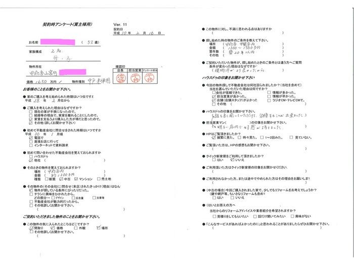この度は弊社にてご購入のサポートをさせて頂き、誠にありがとうございます。 他社さんにて長らくの間、お住まいを探されていたと伺っておりましたので、 I様の「これだ」と思える物件をご紹介することができ、本当に嬉しく思っております。 お子さまのとても嬉しそうなお顔は、私も忘れられません! お二人の幸せのあふれる住まいになることを楽しみにしております。 本当におめでとうございました!平井